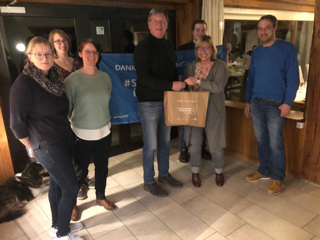 In kleiner Runde, des geschäftsführenden Vorstands und der Mitarbeiter der Geschäftsstelle, hat der TV Dülmen Reimund Thiele als seinen “Corona-Helden” ausgezeichnet und überrascht. Der Landessportbund NRW hat zu der Aktion “# Sportehrenamt überrascht” aufgerufen und um Vorschläge gebeten. Unter diesem Motto wurde ein kleines “Helden- Paket” für stille Helfer im Sport, die auch in der schwierigen Situation der Pandemie immer ihrem Verein zur Seite standen und im Hintergrund aktiv waren, verschickt.