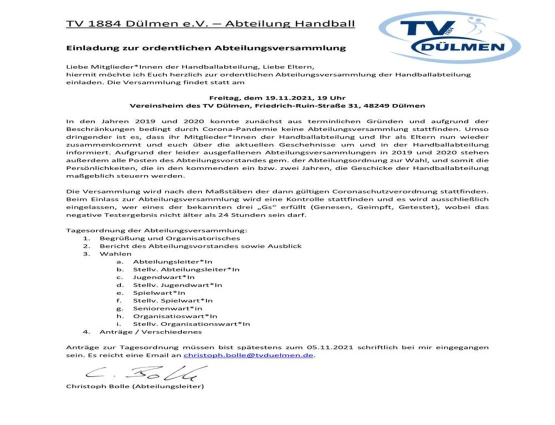 Handball "Einladung zur ordentlichen Abteilungsversammlung"