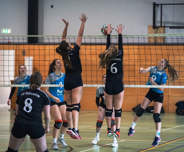 Dülmen (mpm). Die ersten Volleyballdamen des TV Dülmen absolvieren ihr letztes Spiel der Saison gegen die SG Borken-Burlo, erreichen einen ungefährdeten 3:0 Sieg (25:18; 25:21; 25:22) und beenden die Landesliga im gesicherten Mittelfeld. Durch den Sieg korrigieren die Dülmener die Abschlusstabelle final und schieben sich aufgrund der besseren Satzzähler an der SG Coesfeld vorbei auf einen achtbaren Tabellenplatz vier.
