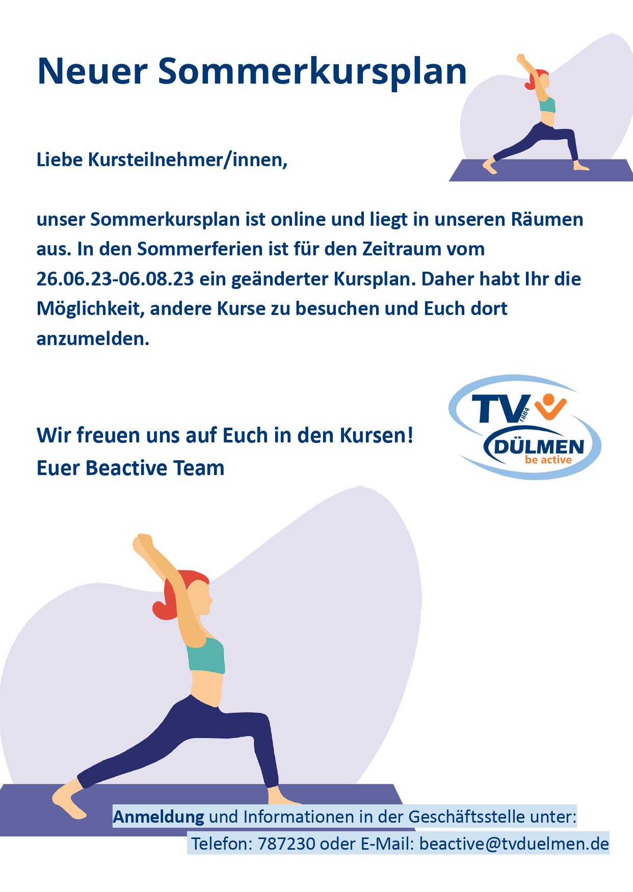 Unsere Sommerkurs Plan findet ihr hier: https://www.tvduelmen.de/images/be-active/Kursplan-_Februar-2019.pdf