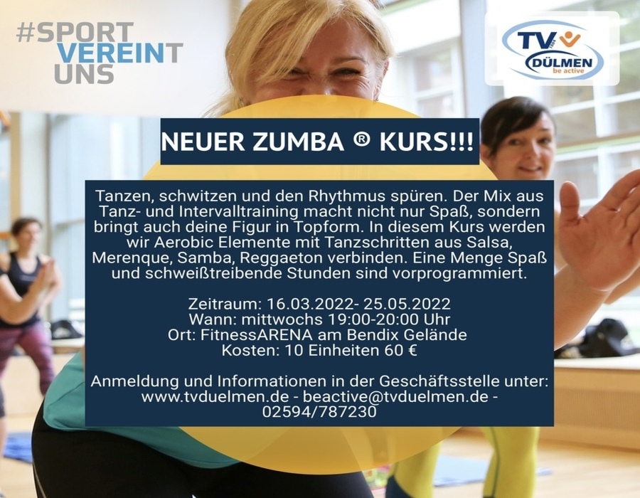 Ab dem 16.03.2022 beginnt beim TV Dülmen ein neues Kurs Angebot “Zumba®”
