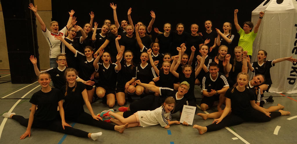 Bevor die TV-Delegation jubeln durfte, tanzten die Sportlerinnen in der Pause zwischen Wettkampf und Siegerehrung einfach weiter. Als sie dann das Ticket für das Bundesfinale in der Tasche hatten, kannte die Freude keine Grenzen mehr. Trainerin Diana Wiesmann umarmte mit Tränen in den Augen jede einzelne Aktive. Und nach einem Sieger-Selfie wurde gemeinsam mit Freunden und Eltern in der Halle weitergetanzt, bis die Musik ausging. „Auch beim Abbauen haben unsere Mädels immer noch Räder geschlagen“, berichtet Jasmin Langen vom TV. Am Ende ging es dann noch zum gemeinsamen Eisessen. Jetzt wartet „DanceExplosion“ gespannt, wann und wo das Bundesfinale steigt. „Ich würde den Mädels eine Fahrt nach Berlin wünschen“, so Langen.