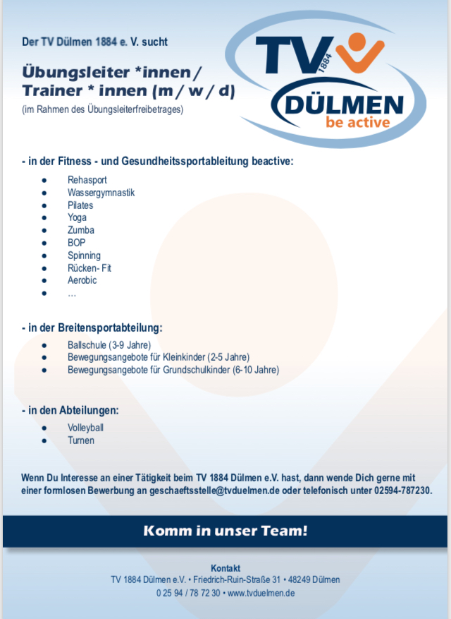 Wir suchen DICH! Übungsleiter und Trainer gesucht...