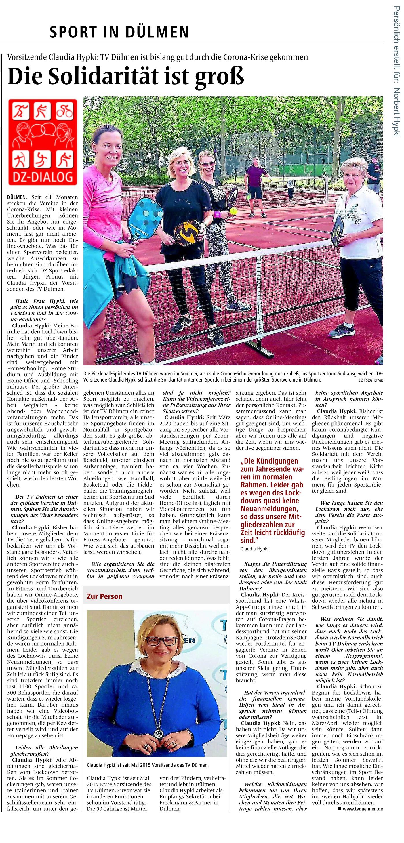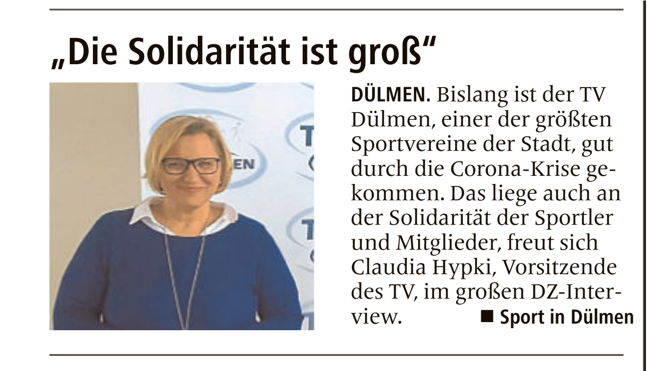 Am Montag berichtete die Dülmener Zeitung über die "Corona - Lage" beim TV Dülmen.